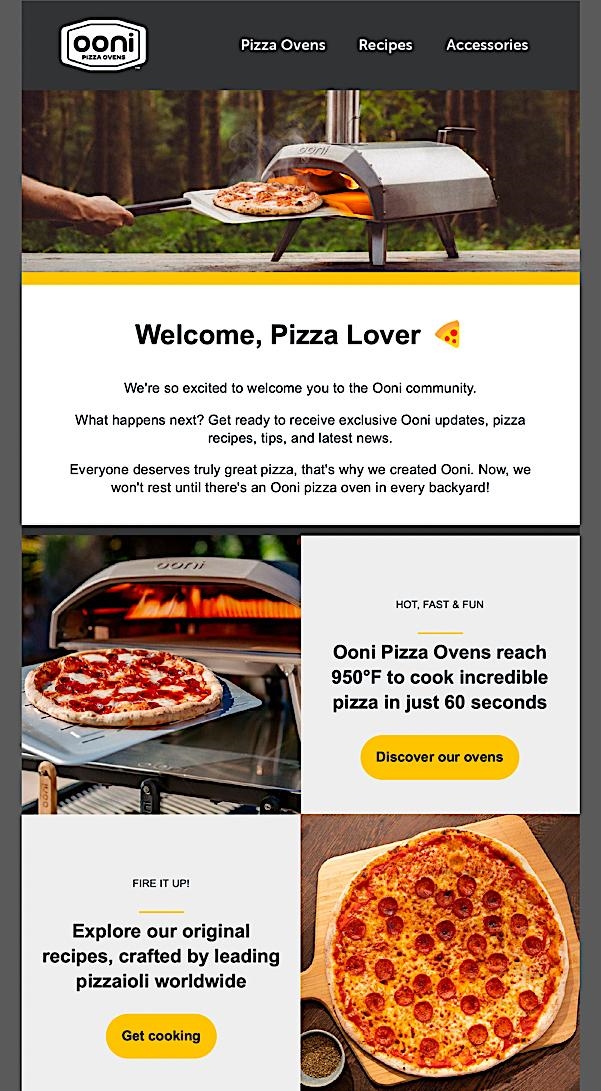 Now here’s a welcome email that I love from Ooni, a European pizza oven manufacturer: