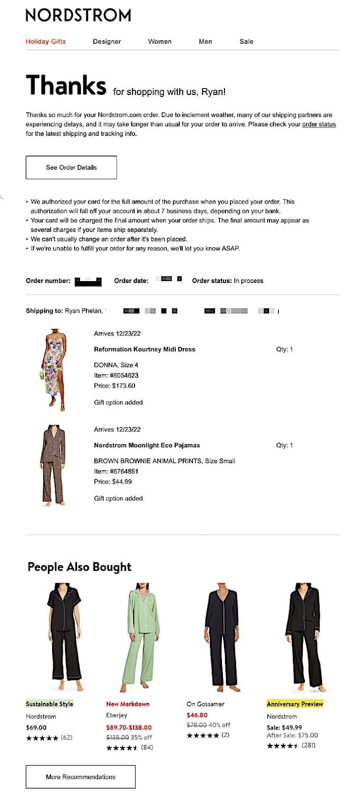 The Nordstrom example shows how well this premium retail brand understands cross-selling and upselling in transactional emails.