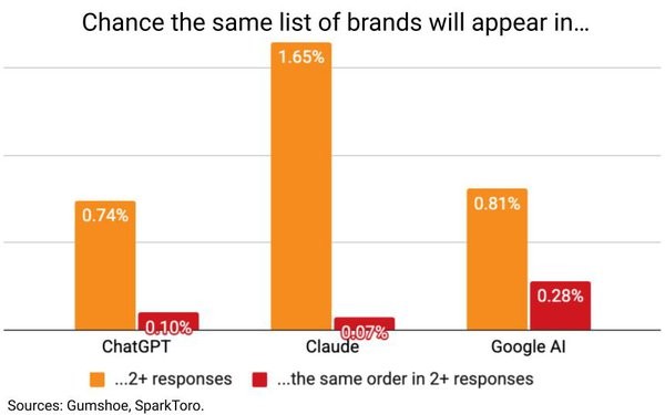 AI Brand Recommendations: Chaotic, Inconsistent by Laurie Sullivan , Staff Writer, January 28, 2026 AI recommendations vary even when prompts are identical. New data from analytics research firm SparkToro shows intent as consistent, but the order of the recommendations tracking is mostly random and filled with errors. When someone goes to ChatGPT, Claude, or Google’s … Continue reading AI Brand Recommendations: Chaotic, Inconsistent