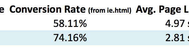 When we’re researching or measuring how a certain test performed, we can utilize more metrics like bounce rate or site speed to see if those metrics are contributing to overall CRO issues. The study below shows just how site speed can have a direct link to an increase in conversion rate. A drop in 2 seconds of average page load time increased the conversion rate by roughly 10%, far more than what the bump in unique visitors would cause! If your conversions aren’t picking up, look to other metrics to see just what is going on.