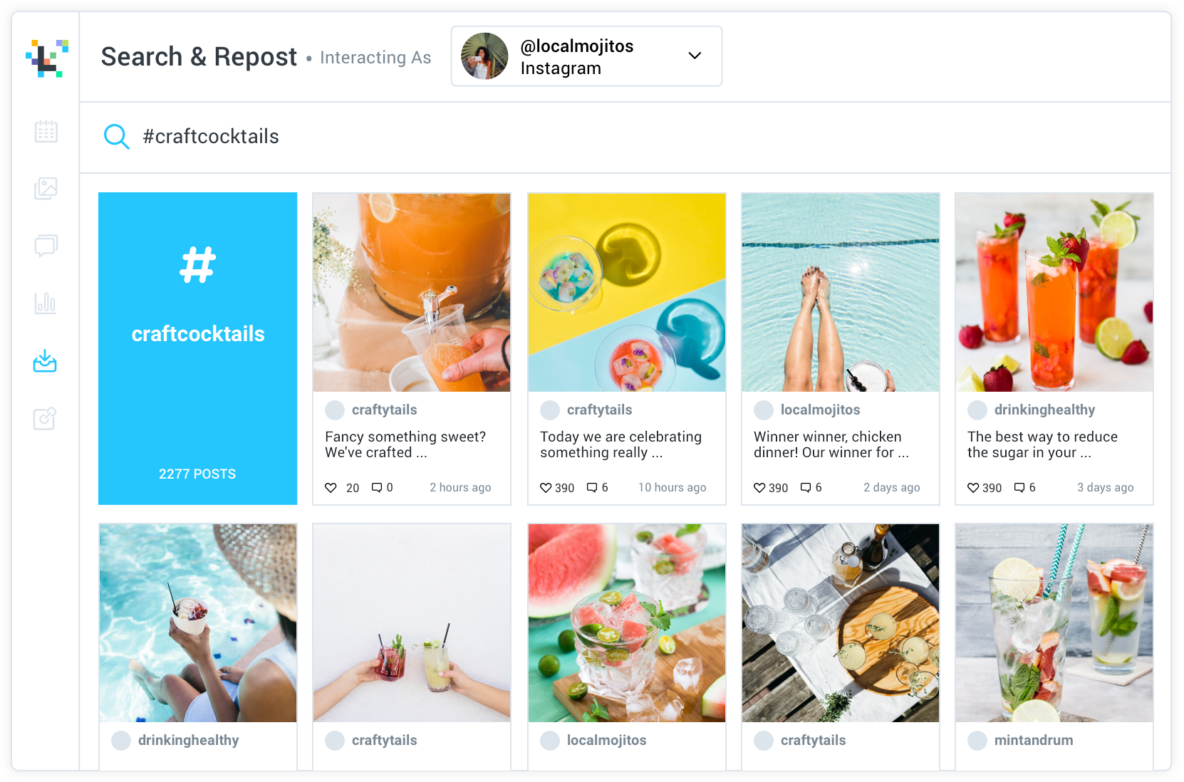 Later is a comprehensive Instagram management platform, but one of its most beneficial features is Search & Repost. First, it looks for an Instagram post based on the hashtag you choose. It could be your brand name, your product name, or a hashtag dedicated to a specific Instagram campaign.