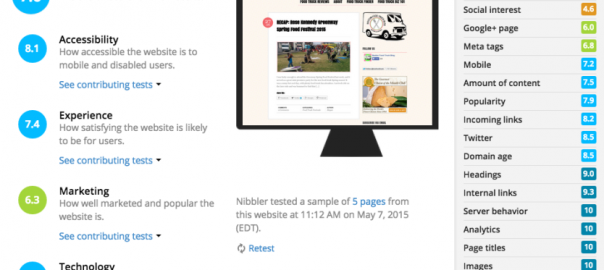 Nibbler is a marketing grader that provides an overall grade for your website experience, along with 4 specialized grades focusing on: