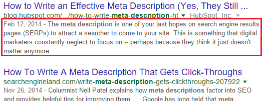 The meta description is the descriptive text that appears under your heading in search results. Search engines don’t rank based on the meta description, but your customers will care about it. Include keywords in your meta descriptions so searchers can quickly see that they’ve found the content they’re looking for.