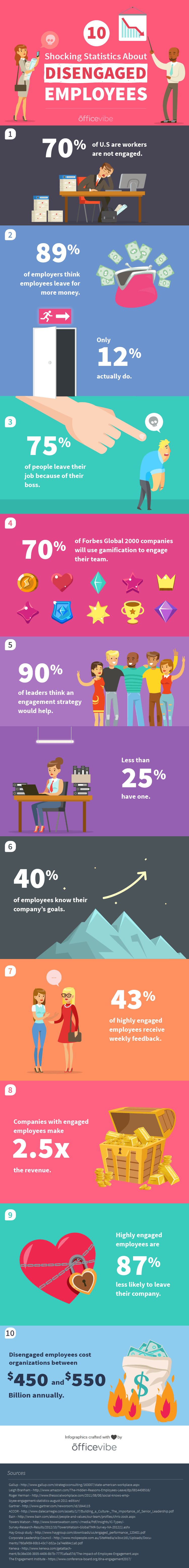 In order for companies to reverse, or better yet prevent the damaging effects of disengaged employees, there must be a constant emphasis placed on improving the 10 pillars of employee engagement, which accounts for things such as the relationship between employees and managers, overall happiness and wellness, company alignment, relationship with colleagues, etc.