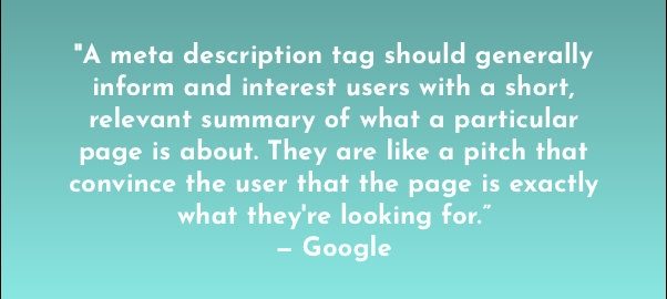 Approach your Meta Description much like you would a Headline or brief excerpt. You have limited space to attract attention that will get someone to take the next step by clicking through to your page. Use smart copywriting approaches but always remain true to the content of your page.