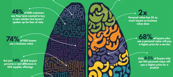 53. Emotion plays a surprisingly large role in B2B purchases. Even when buyers see the value to the business, only 14% perceive a real difference in supplier offerings. (Business 2 Community)