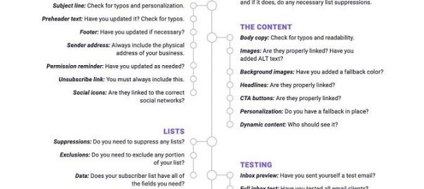 I love lists. I love making lists, I love checking things off my list, I love keeping those crossed-out lists around to feel productive (and just to remember what I got done on a given day). When you’re sending out a lot of emails, it can be easy to miss spelling mistakes, a broken link, the wrong preview text. Create a quality assurance checklist to make sure you have a clean send record.