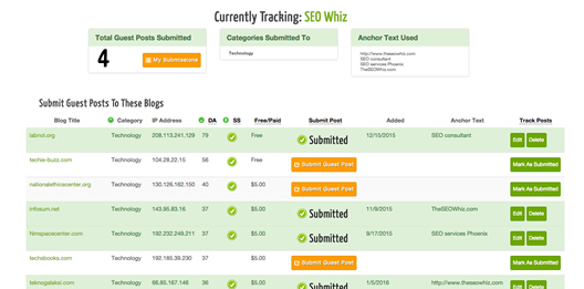 Unlike the other 2 tools on this list Guest Post Tracker is not a reporting tool. Their software helps you easily submit your guest posts and then also allows you to track all of your submissions so you can have an organized plan of attack.