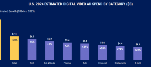 CPG and retail make up the biggest slices of digital video spend. And they’re growing. CPG brands alone are projected to spend $ 12.6 billion on digital video in 2024, according to IAB’s “2024 Digital Ad Spend & Strategy Report.” That’s up 20% from 2023. And retail is growing even higher at 30% year-over-year, projected to reach $ 7.4 billion.