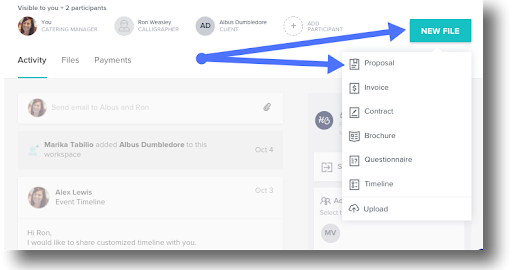 The proposal merges these two steps by combining the contract and invoice into one file! You just insert your template, review the payment schedule and contract, make adjustments where needed, and send.