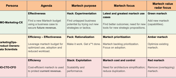 Below, the matrix outlines three martech stakeholder roles, helping to build a shared understanding that supports collaborative decisions.