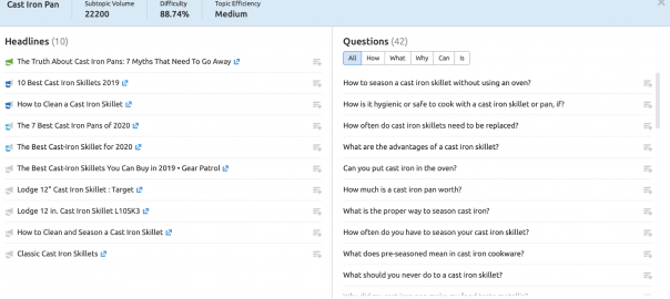 For example, a piece of content about iron skillets can be featured in the following ways: