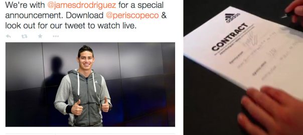 In 2015, Adidas live streamed football/soccer player James Rodriguez signing his new contract: