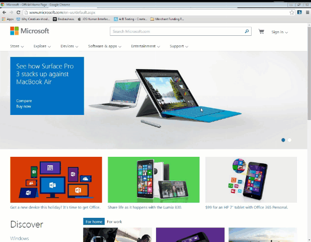 For a leading multimedia corporation that deals in many varieties of technology, Microsoft’s website makes their brand easy to recognize and their product offerings easy to navigate.