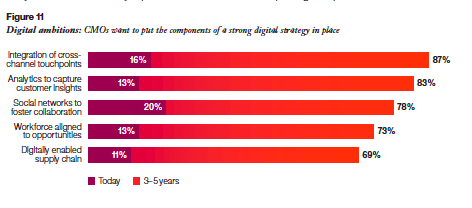 - Where should we invest? Typically, this is a teaser question, and could also be asked as; “if you had an incremental $ 1 (or $ 10K, $ 100, etc.) where would you invest it?” Keep in mind that just because the CEO is asking the question it doesn’t necessarily mean you’ll get the incremental funding, but you better be able to answer the question. To do that see IBM’s C-Suite Priorities report entitled The Customer-activate Enterprise. The research, collected from face to face interviews with over 4000 senior executives, provides insights into the priorities of each member of the C-Suite. The top priority in the report is Digital. Including everything from increasing responsiveness to customers to making the organization more agile and responsive. Specific priorities for CMO’s, it’s about capturing; analyzing and using customer data across touch points.