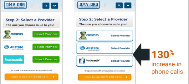 A/B testing is an extremely popular method for optimizing conversion rates, but when you don’t have the ability to track every conversion, the insights become less powerful. With call attribution software marketers can track conversions that occur offline with the same level of detail as online conversions. And by integrating call tracking data with your A/B testing tool, you gain the ability to determine which variation truly drove the most conversions as well as optimize for call conversions. Here’s an example of an A/B test designed to increase call conversions: