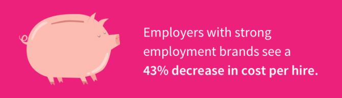 - Employers with strong employment brands see a 43% decrease in cost per hire