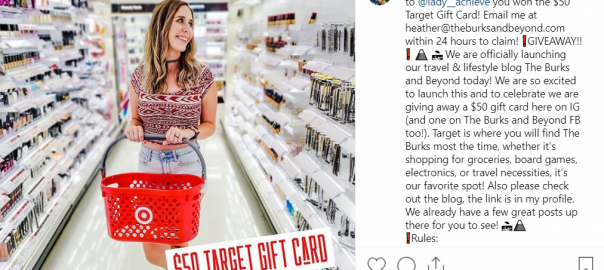 Check out the online contest example below. This travel and lifestyle blog, The Burks & Beyond, held a blog launch contest with a prize of a $ 50 Target gift card for their audience.
