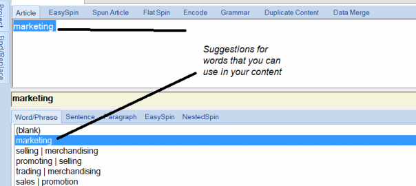2. The Best Spinner – a resource that I use to find the right words and phrases to use in my content. What it does is take my original words and changes it to different content that I can use in my blog posts. Here’s a screenshot of how it works: