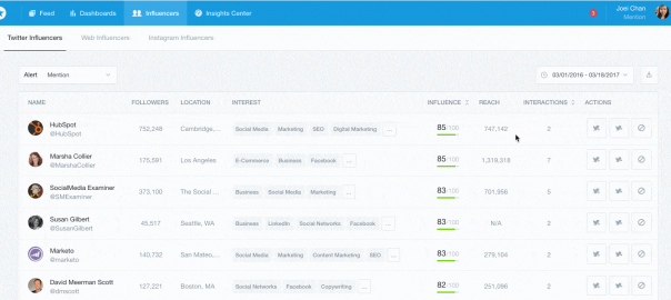 When we started our expert series, we found marketing influencers by looking at Mention’s influencers dashboard for big guns that were already engaging with our brand. We also looked at their interests to make sure there’s a market/audience fit: