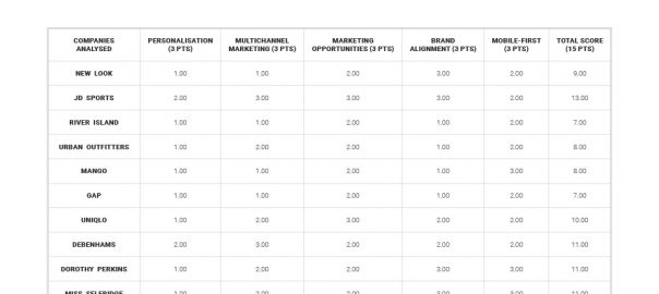 A team of email experts analysed e-receipts sent by 15 leading high street brands and retailers in the UK in March 2019. Each email was individually scored according to how well it met the below criteria, (e.g. scoring system: 3.0 = best possible score, 1.0 = worst possible score) the average result was then calculated for each candidate.