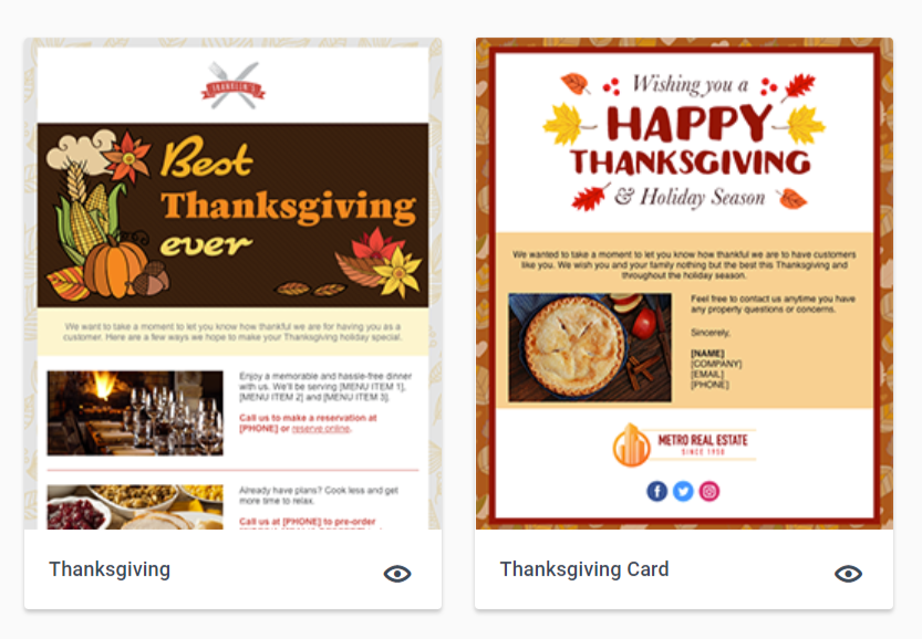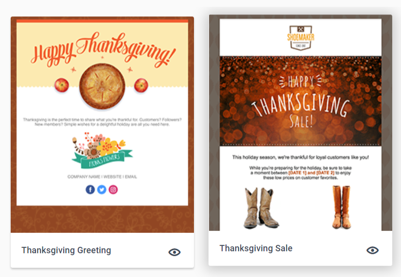 Here’s a look at some easily customizable Thanksgiving email templates created for Constant Contact users: