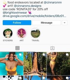 Bright Swimwear (@brightswimwear) brand ambassador Ronito (@xronita) promoted her Bright Swimwear promotion code on her Instagram bio and regularly posts self-made content on her page