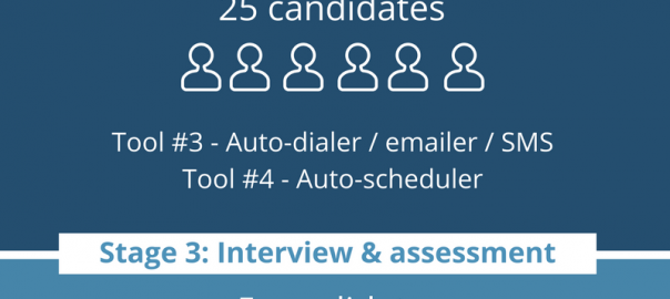 A resume spends 23% of its time in the screening phase. Luckily, there are a variety of recruitment software tools available to speed up prescreening include auto-dialers, auto-texters (SMS), and auto-emailers that can contact candidates for you.