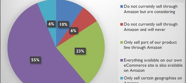 Some 55% of retailers said everything available on their own website is also available to purchase on Amazon, compared with 23% that said only part of their product line is sold through Amazon.