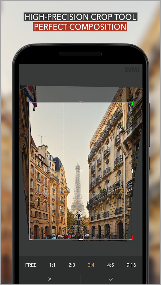 Another powerful editing app is SKRWT. It’s especially useful for perspective corrections and adjusting distorted lines due to the wide angles lens.