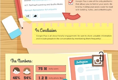 Google Plus is a network that offers a longer-form posting format for its users, 63% of whom are male and tend to be involved in the tech sector. When working with Google Plus, keep this etiquette in mind: