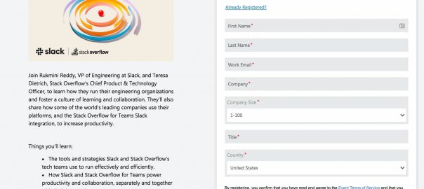 Whether members attend or not, Slack now has helpful information about their target audience, including company name and size. They can use the provided work email address to add users to their mailing list and nurture them through the sales funnel.