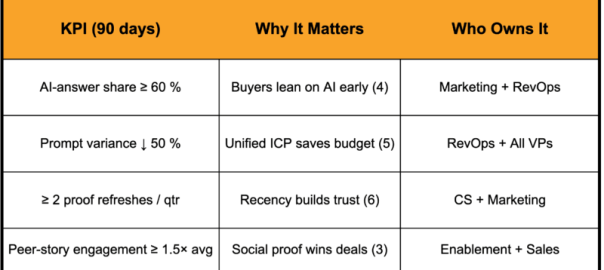 Four shared KPIs make buyer momentum visible — and track how well we’re adapting to AI-era behavior.