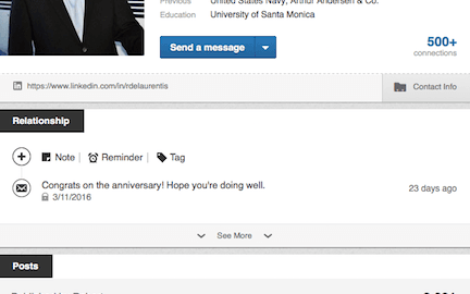 Take a look at your current information to fix any errors, add new information and relevant work or articles, etc. Your headshot should be professional and not outdated with the most current information at the beginning of your profile. LinkedIn gives you the option of a public view, which can be helpful in making your improvements. Here’s a great example from one of my clients, Robert DeLaurentis, owner of Flying Thru Life: