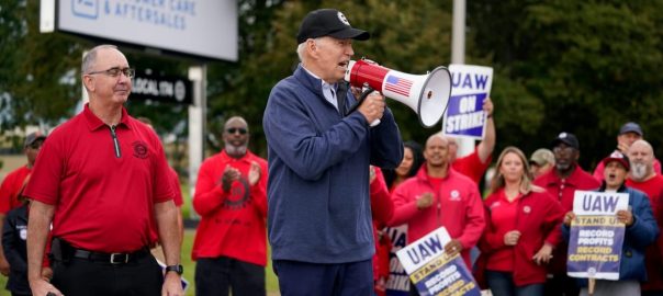 Biden’s trip to join a picket line in the suburbs of Detroit is the most significant demonstration of his pro-union bona fides, a record that includes vocal support for unionization efforts at Amazon.com facilities and executive actions that promoted worker organizing. He also earned a joint endorsement of major unions earlier this year and has avoided Southern California for high-dollar fundraisers amid the writers’ and actors’ strikes in Hollywood.