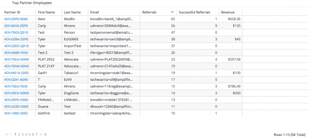 - Top partners by # of successful referrals