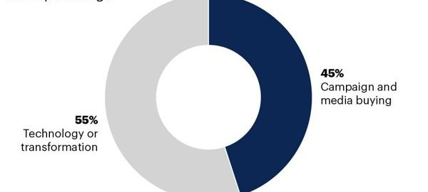 Gartner reported that 55% of marketing budget allocations during the past year went to technology or transformation, compared with 45% to campaign and media buying.