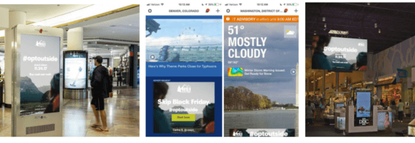 Examples from REI’s #OptOutside out-of-home and digital campaign.