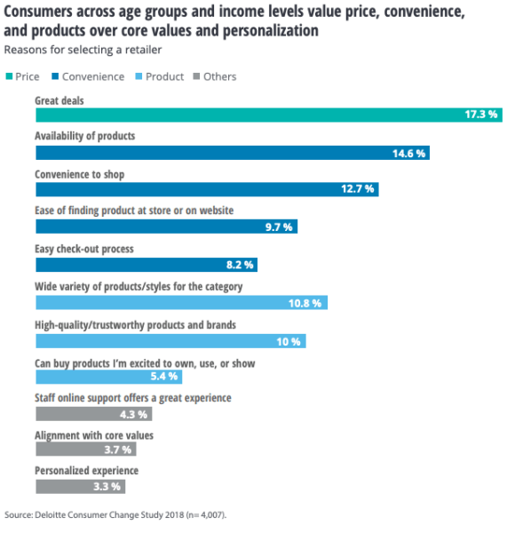 Consumer behavior may not be what you think it is. Greg Sterling on May 31, 2019 A widely accepted idea among retail technology providers is: consumers crave personalization. However, in a new study, Deloitte finds that personalization is last on a relatively long list of factors that consumers consider when choosing a retailer. The … Continue reading Consumer study finds ‘personalization’ lowest on long list of retailer considerations