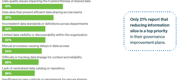 More than one-third (37%) of professionals report that data silos prevent efficient data sharing across teams, according to a report from Ascend2 and Collibra.
