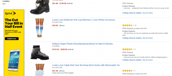 When I search for ‘boots that can be worn in winter’ instead of ‘winter boots’ Amazon pretty much gets what I’m looking for. It ends up showing me a series of winter boots and leg warmers which is pretty commendable.