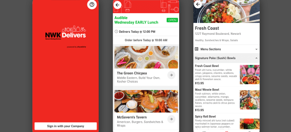 Before 10 a.m. every day, Audible workers can select a lunch order from one of a handful of local restaurants, which is then delivered either at noon or 1:30 p.m. Each day’s participating restaurants start their day with a bulk order from Audible’s app, giving them guaranteed business and helping to keep their doors open.