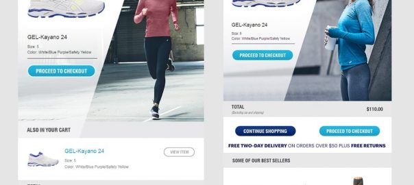 I love the cart abandonment email series by ASICS as it highlights the product left in the cart in the first email followed by a clear CTA. The second email displays the item and also features three of their bestsellers. Take a look.