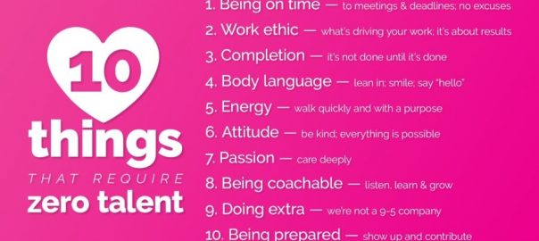 So, over the next few months, Cathy’s team took the “10 Things That Require Zero Talent,” and started distributing it around the office as a cultural artifact. Thus, the journey to self-leadership began.