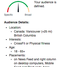 Let’s say I was opening a crossfit-style gym in Vancouver and promoting it with a sweepstakes contest. These would be my primary targeting strategies to advertise it on Facebook: