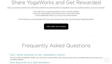 - Eye-catching, large CTA: “Share YogaWorks and get rewarded.”