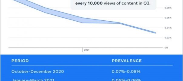 On Tuesday, Facebook published its Q3 2021 transparency reports, including reports on its most widely viewed content and community standards enforcement. The Widely Viewed Content Report shows a clear pattern in the top 20 most viewed posts and the Community Standards Enforcement Report shows that the prevalence of hate speech on Facebook has decreased for the fourth consecutive quarter.
