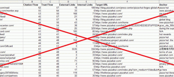 The metrics chart looks commonly like the image below. In this case, the last column (LS) represents the power of backlinks. I analyzed the domain “pizzahut.com” in LinkMiner.