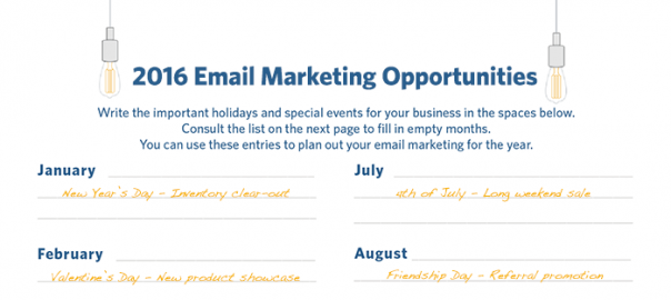 In this post, you’ll find the first resources to help you identify your 2016 email marketing opportunities. Download and print these worksheets now.