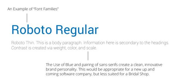 Contrast, which basically means using two fonts that are distinctly different from each other, helps create visual interest—for example, a very thick font compared to a very thin one. Contrast is king when it comes to font pairing.
